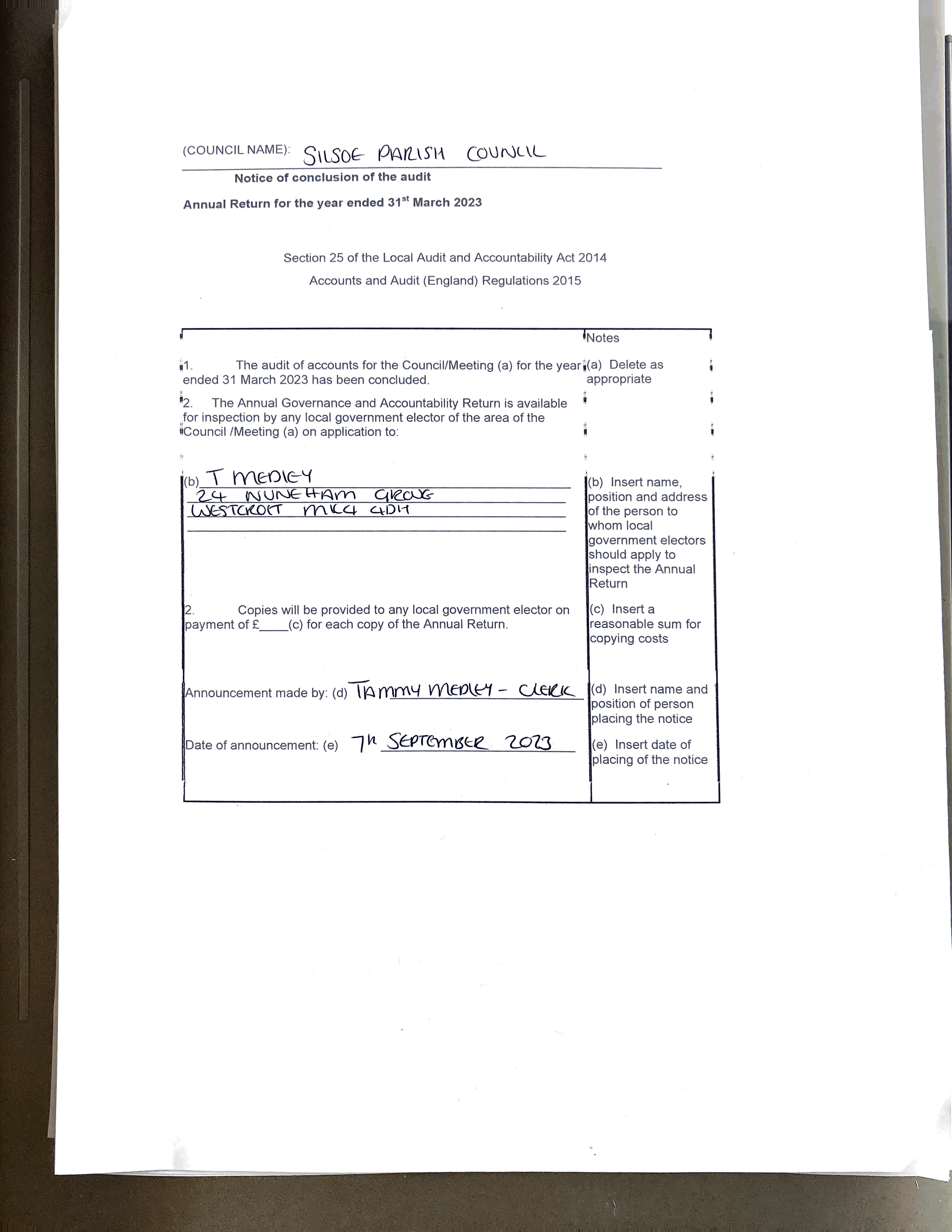 Parish Council Meeting Minutes - September 2023