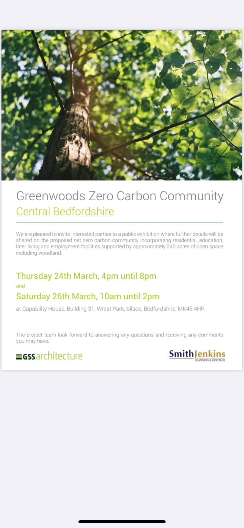 GREENWOODS NEW TOWN – EVENT SATURDAY The developers want to build over 1000 houses around us have set up a meeting to try and persuade residents to approve the appeal.Thursday 24th March, 4pm until 8p...